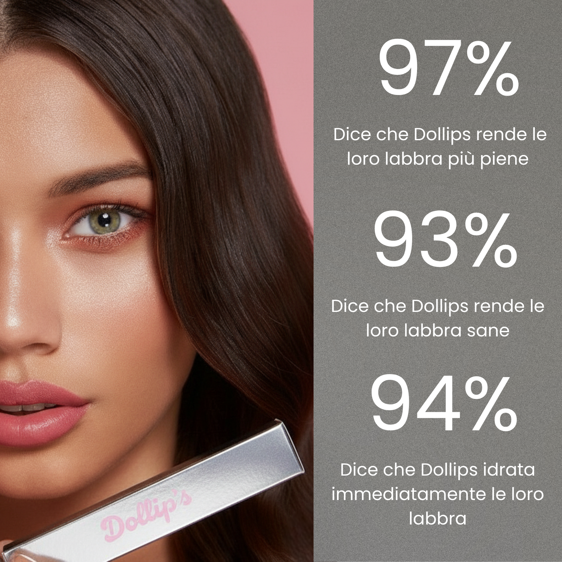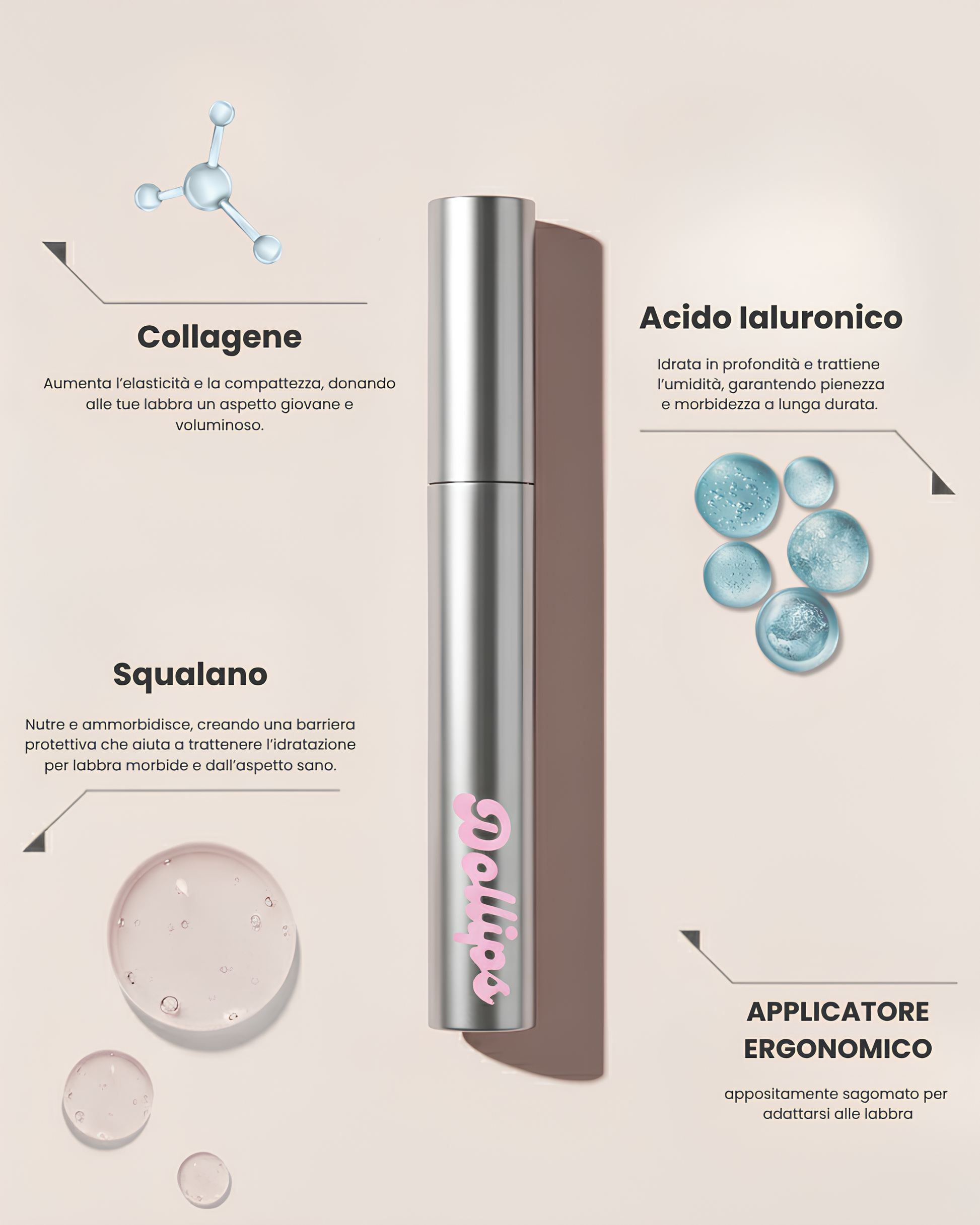 Con la nostra speciale miscela di ingredienti naturali, i lip plumper Dollips gonfiano delicatamente le labbra per un aspetto più pieno, idratandole e ammorbidendole per una sensazione liscia e morbida.